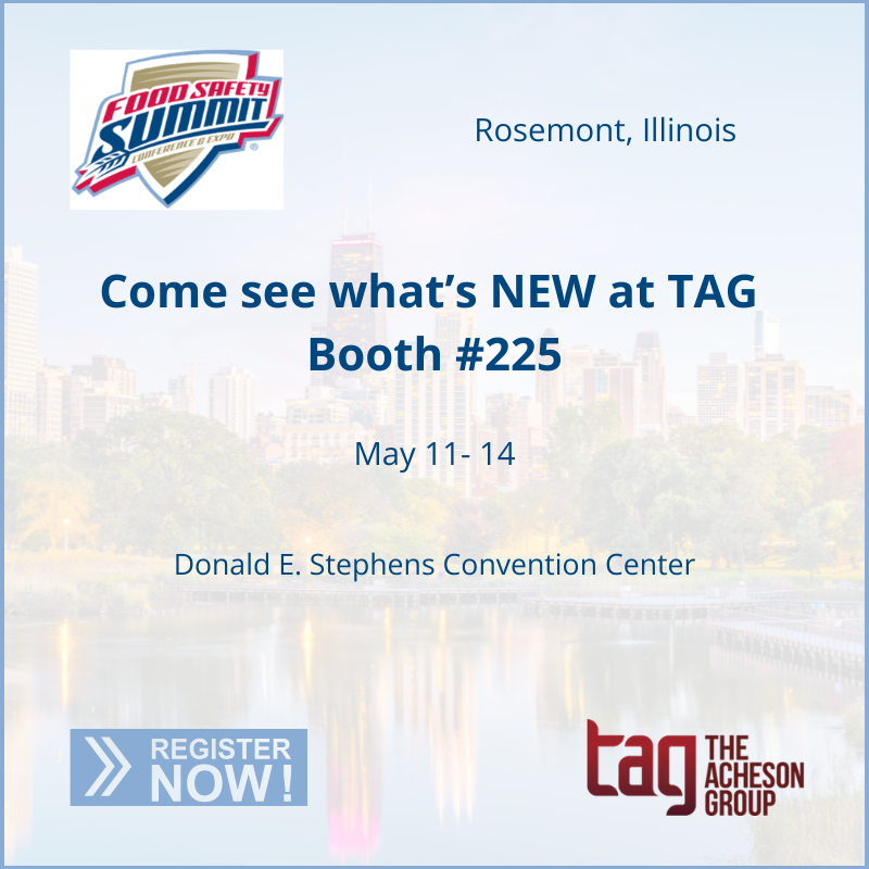 Come join TAG at the Food Safety Summit in Rosemont, Illinois. We will have a variety of Account Managers and Subject Matter Experts eager to