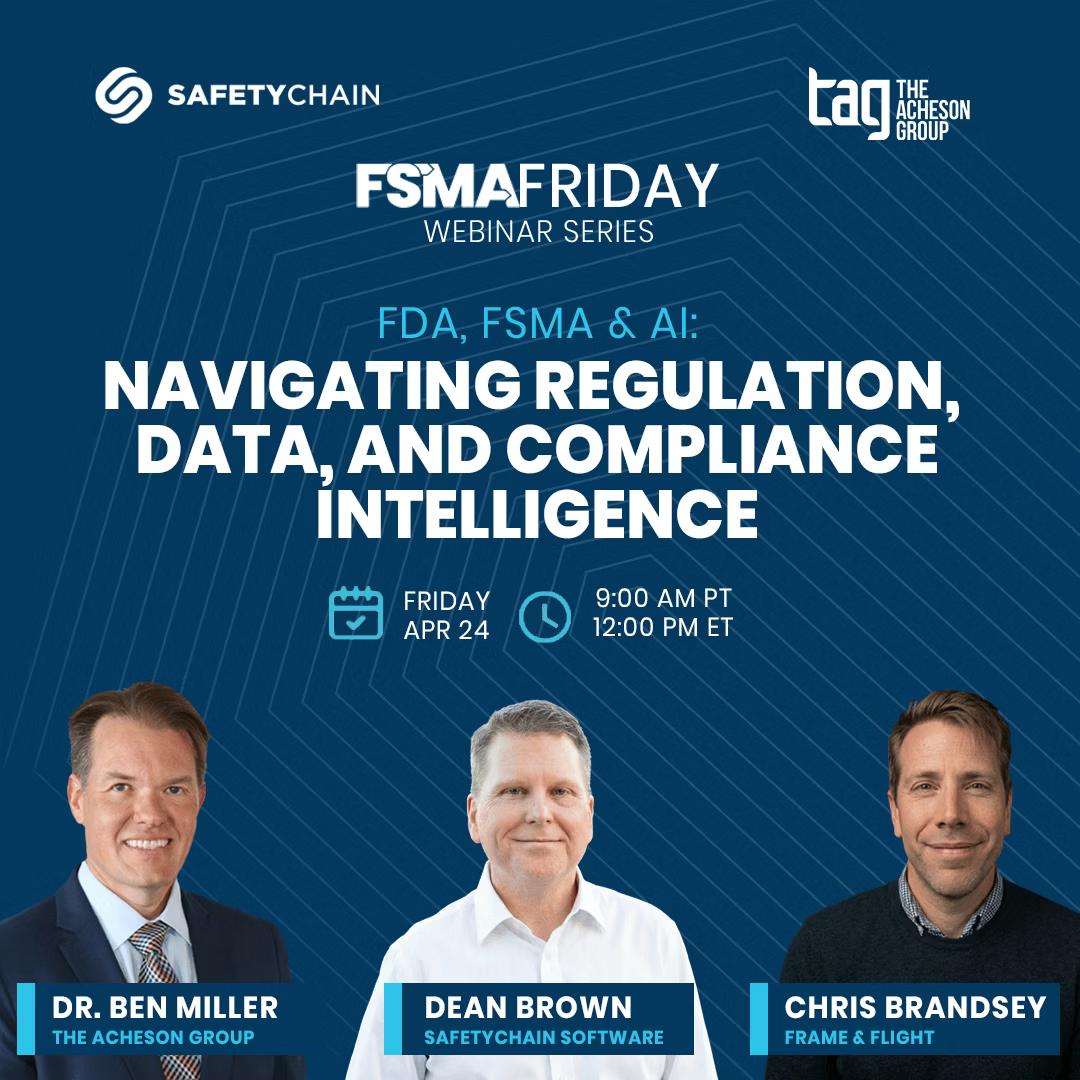 Join TAG's Senior Advisor of Food Safety, Dan Rice, for FSMA Friday on February 27, 2026 at 12pm ET. Dan and SafetyChain Software will explore